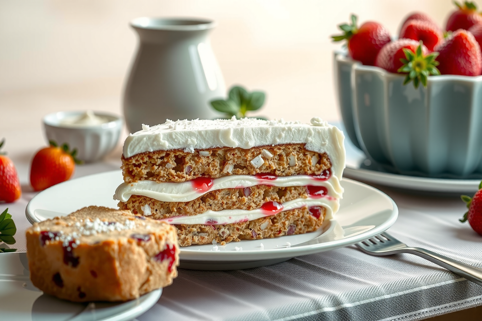 Pastel de almendras y cerezas